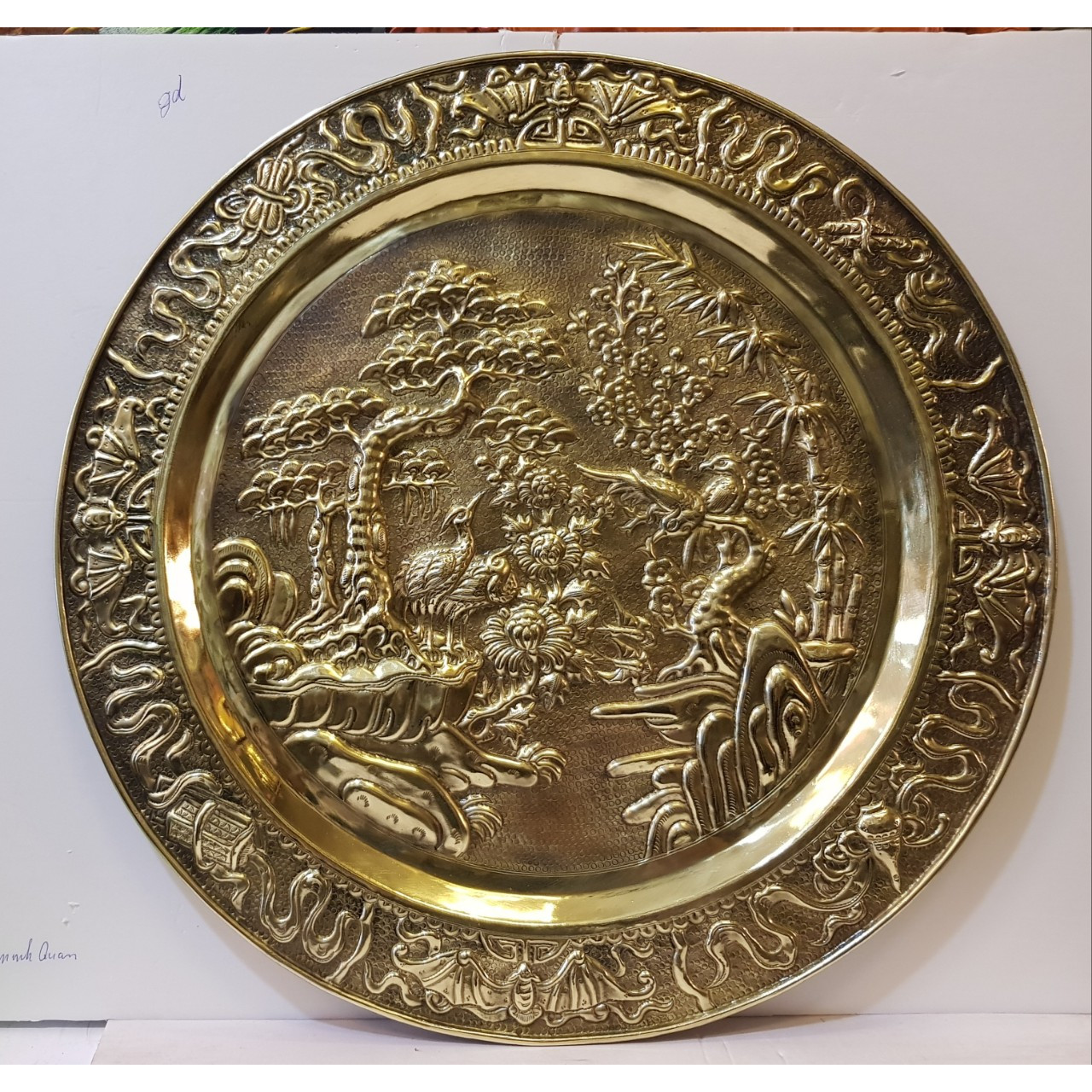 Mâm Đồng Vàng Chạm Khắc Nổi Thủ Công Cao Cấp