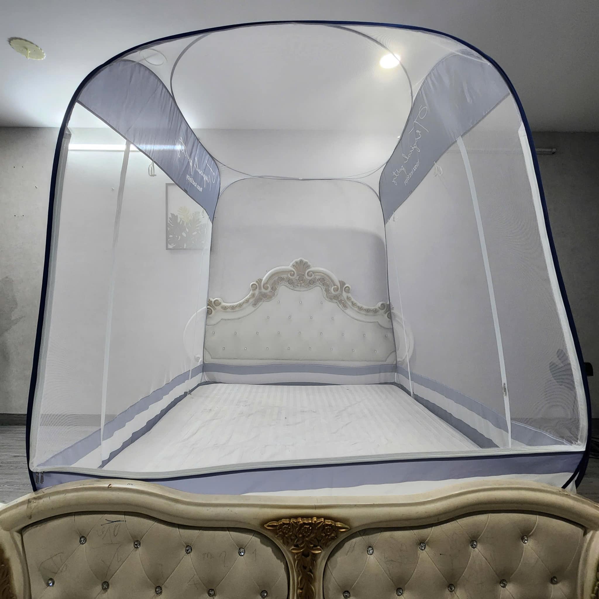Kiểu dáng: Đỉnh rộng, có 2 cửa ra vào, có viền chân là từ vải nylon thay vì lưới mùng ( giúp bảo vệ 100% khi để tay chân chạm sát mùng)