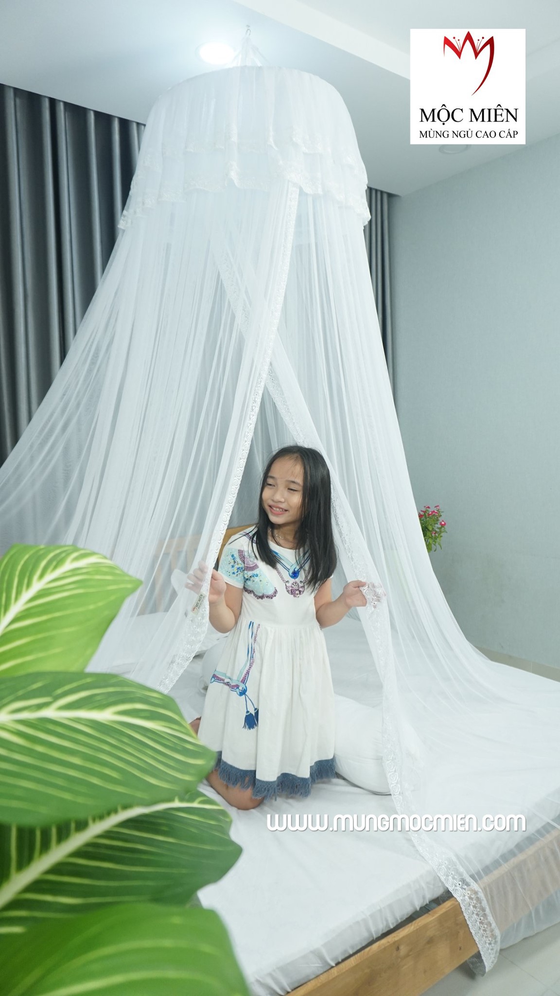 MÀN CHỤP , MÙNG CHỤP CAO CẤP MỘC MIÊN ĐỈNH CHÓP : - Dùng màn chụp đỉnh chóp cho không gian nhà nhỏ - dễ gấp , mắt lưới thưa hơn mà vẫn đảm đảm