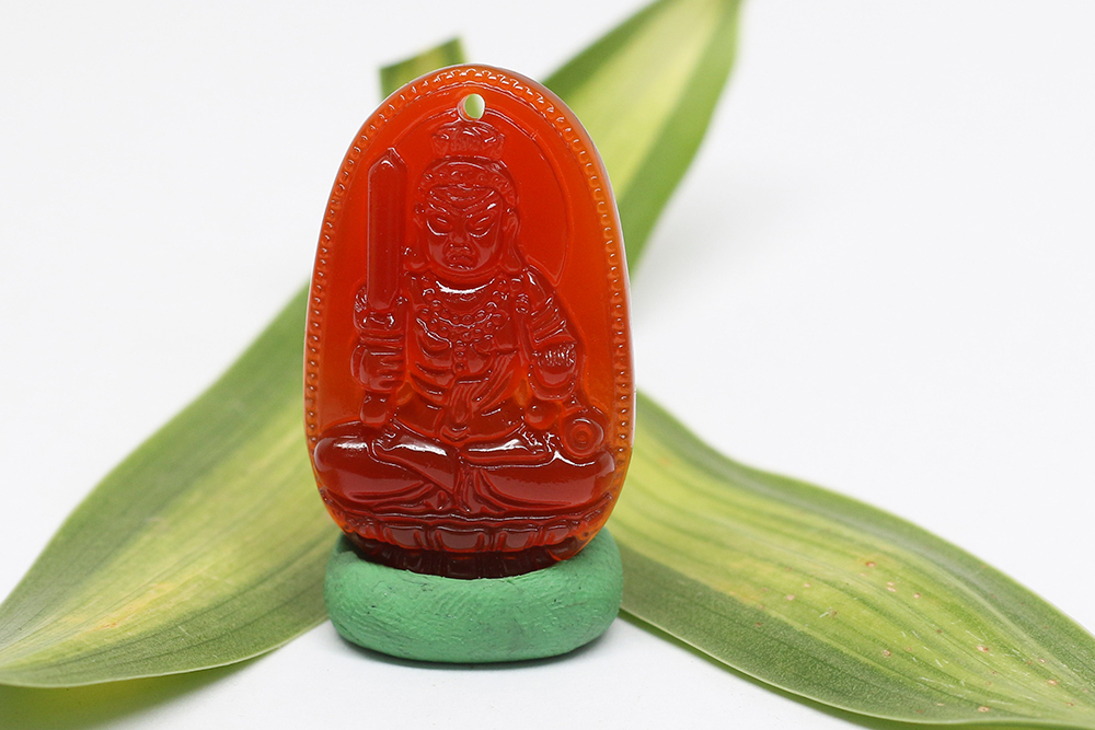 Mặt dây chuyền Bất Động Minh Vương đá mã não đỏ