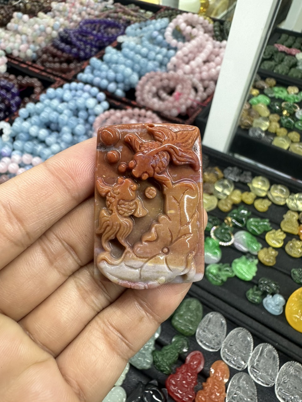 ✨Mặt dây chuyền cá chép phong thủy đá ngọc băng tảo