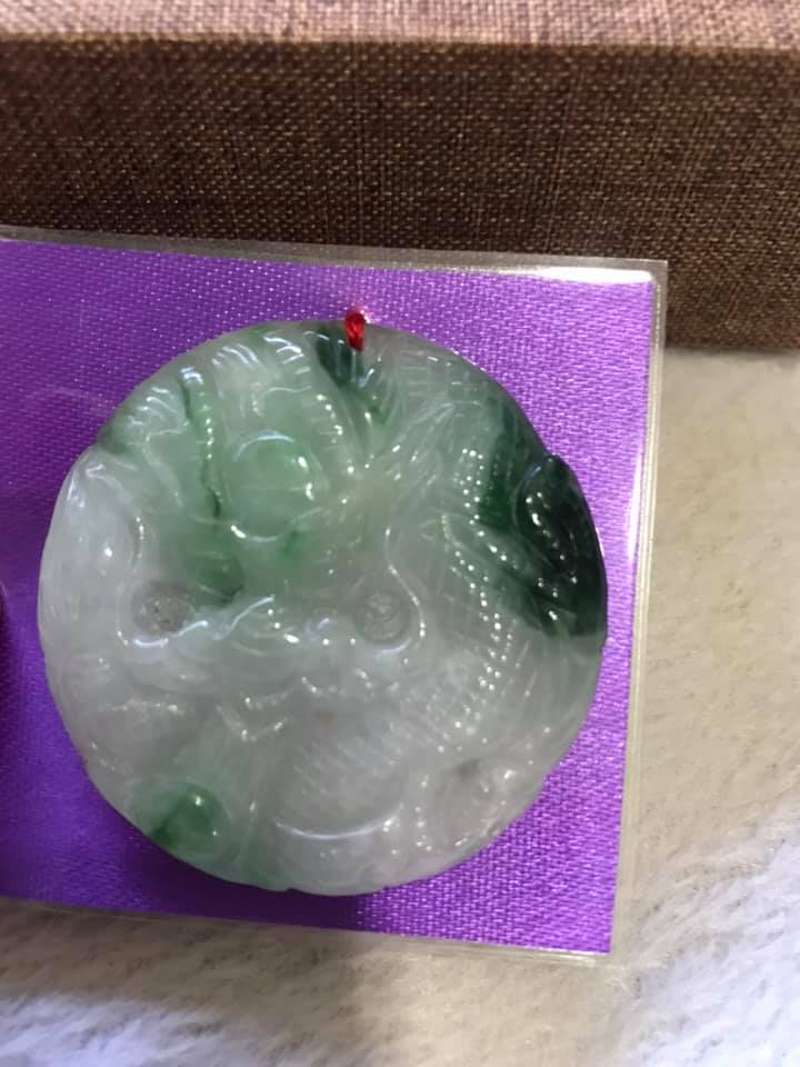 Mặt dây chuyền Nam con rồng lượn to tròn nổi đẹp 53mm x 6mm đá cẩm thạch xanh tự nhiên đẹp/ SUNNY Q8