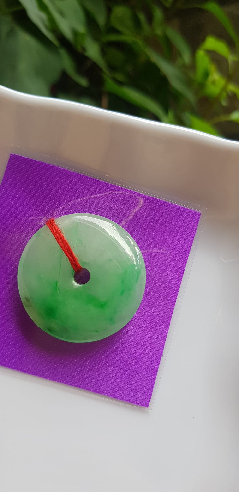 Mặt dây chuyền Đồng Điếu Đồng Tiền A Đẹp Ngọc cẩm thạch tự nhiên trắng xanh lý đều đk 32mm dầy 6mm
