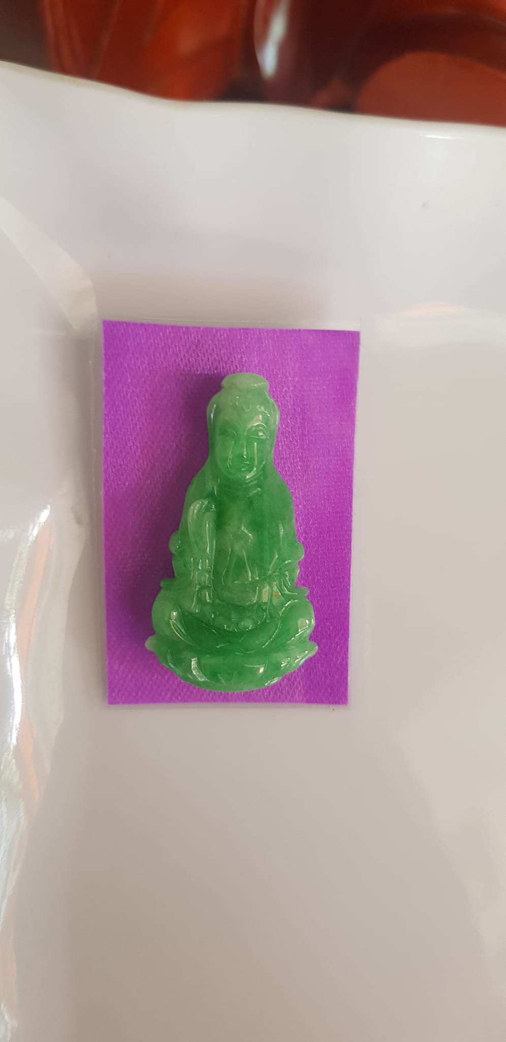 ✨Mặt dây chuyền Nữ Phật Quan Âm Ngồi đẹp đá ngọc cẩm thạch tự nhiên đẹp Size vừa nhỏ Cao 40mm x N20mm x S6mm Màu xanh lý đều bóng đẹp các Chị về bọc vàng đeo đẹp ạ