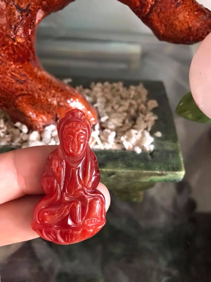 PHẬT QUAN ÂM ĐÁ CẨM THẠCH ĐỎ ĐẬM ĐẸP