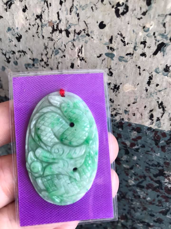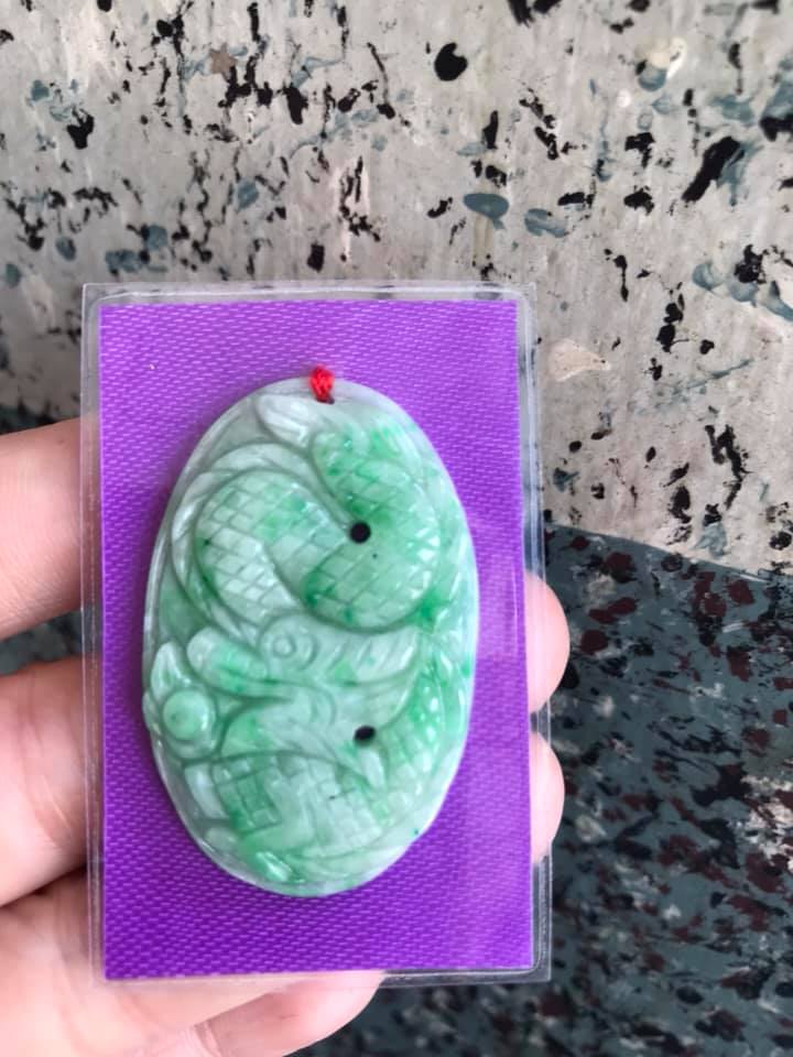 Mặt Dây Chuyền Phong Thuỷ Ngọc Cẩm Thạch Mạ Vàng Hợp Tuổi Thìn,Tuổi Tỵ