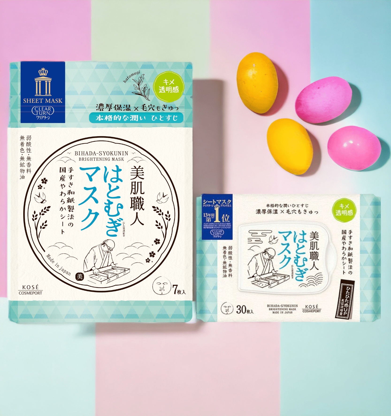 Mặt Nạ Làm Sáng Da Kosé Bihada – Syokunin Clear Turn Brightening Mask B 7 Tấm Xuất xứ : Nhật Bản Quy cách: 7 miếng Miếng mặt nạ được làm từ sợi đặc biệt rất