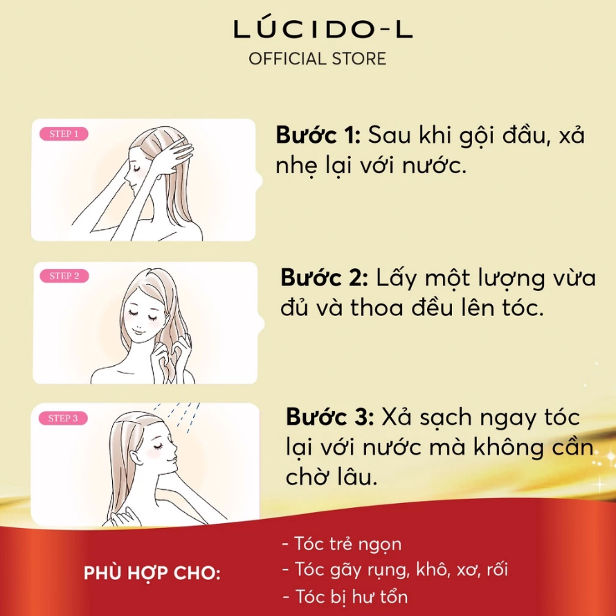 - Dễ dàng thoa lên tóc và xả sạch. Không cần chờ lâu.