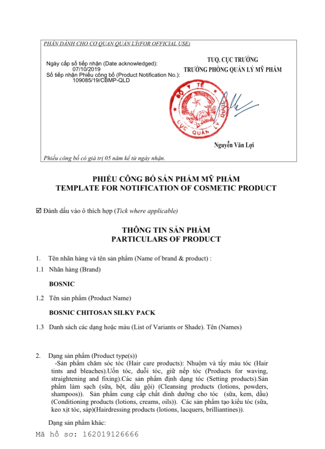 Mua tại TiktokMẶT NẠ Ủ TÓC CHITOSAN SILKY PACK - CHÍNH HÃNG HÀN QUỐC - THƯƠNG HIỆU BOSNIC Mặt Nạ Ủ Tóc Phục Hồi Từ Sâu Bên Trong Đối với chị em phụ nữ, chăm sóc tóc là điều rất cần thiết và là thói quen tốt để giúp cho chúng mình có được một mái tóc hằng mơ ước. Bên cạnh việc dưỡng tóc thì cũng cần chú ý đến việc bảo vệ tóc khỏi các tác nhân gây hại như ánh nắng mặt trời, gió, bụi bẩn, đặc biệt là hóa chất làm tóc. Chính vì vậy, Bosnic đã phát triển ra dòng sản phẩm được xem như bảo vệ tóc khỏi các vấn đề từ môi trường bên ngoài, đồng thời cũng nuôi dưỡng tóc từ sâu bên trong, giúp tái tạo lại các phần tóc bị hư tổn và mang lại sức sống cho mái tóc thân thương. Giới thiệu về thương hiệu: