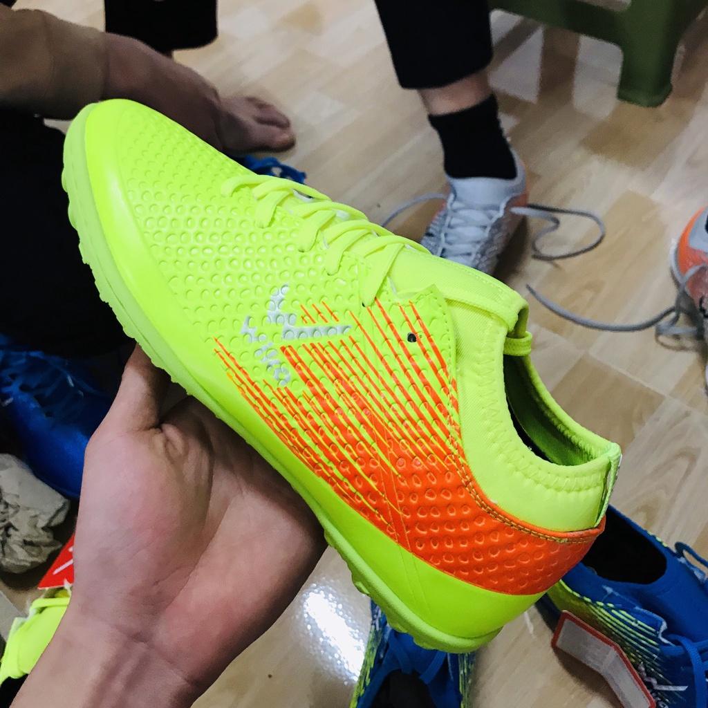 Đặc điểm sản phẩm: - Đế: Thiết kê đinh phù hợp sân cỏ nhựa, sân cỏ nhân tạo - Bên trong có lớp vải bảo vệ êm chân khi sút bóng - Thân giày đá