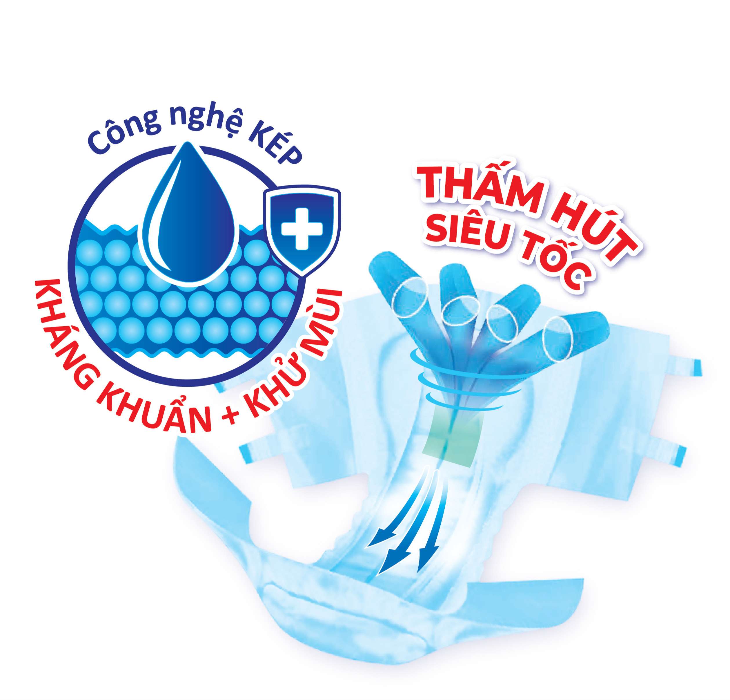 BAO BÌ SẢN PHẨM CÓ THỂ THAY ĐỔI THEO TỪNG ĐỢT NHẬP HÀNG Màng đáy thoáng khí dạng vải 100% Air-active Rãnh thấm siêu tốc giữ bề mặt tã khô thoáng Vách chống trào kép