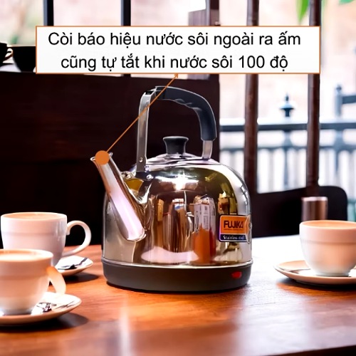 Ấm siêu tốc Fujika sử dụng thân bằng inox sáng bóng, thích hợp với mọi không gian bếp