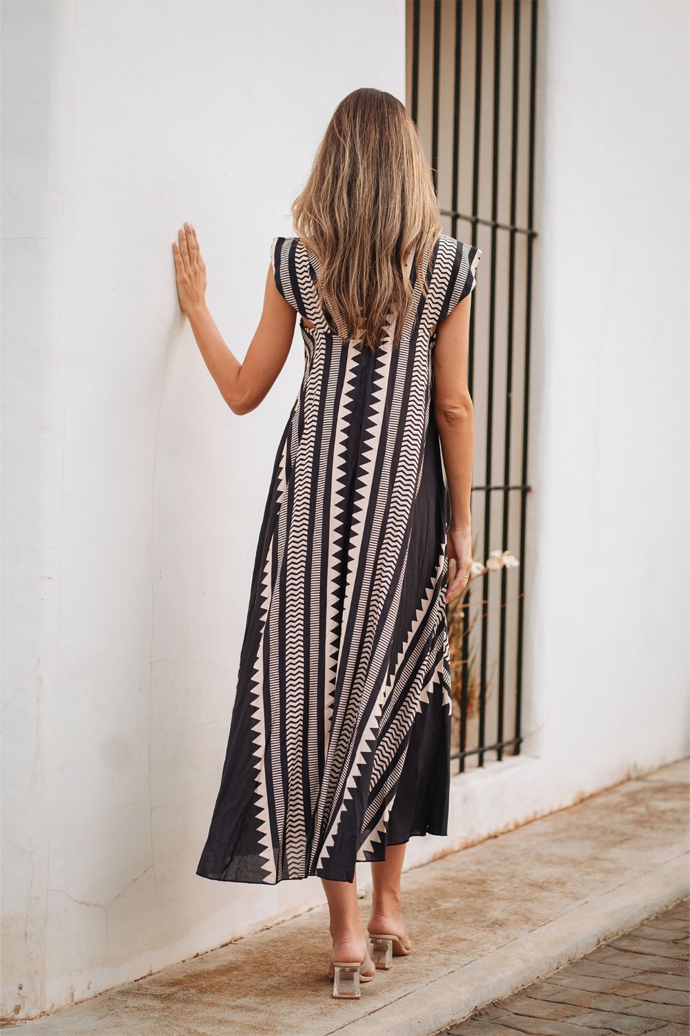 Maxi Boho Cotton Isla Bonita, chất liệu cotton cao cấp, mềm mại. Họa tiết thổ cẩm ấn tượng. Phom xòe rộng. Dài đầm 130cm (45x130) Phù hợp đi biển, dạo phố, công sở, hoặc dự