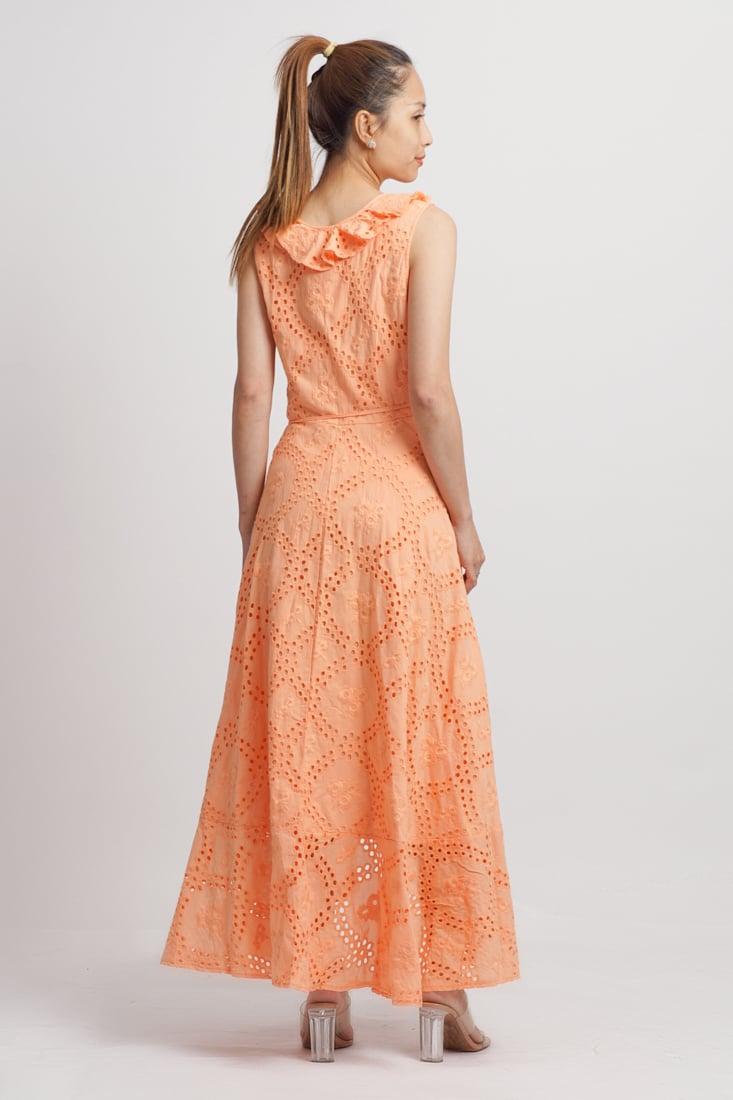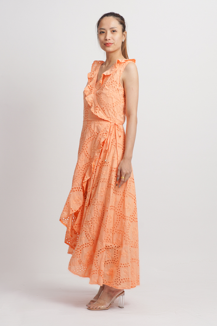 Maxi Cotton Cao Cấp Luna Llena, nền vải Lazer Cut độc đáo, tạo lỗ như ren, sang trọng, chất cotton dày dặn, thân trước đắp chéo, có thể tăng giảm eo. Lớp lót cao cấp.