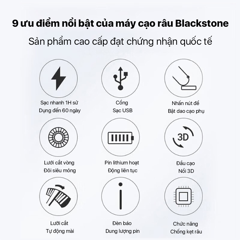 Máy Cạo Râu Xiaomi Enchen BlackStone8 Đầu cạo linh hoạt 3D Tốc độ nhanh, cạo sạch hơn - Hàng nhập khẩu Thông số chi tiết Model: BlackStone8 Công suất định mức: 5W Điện áp định