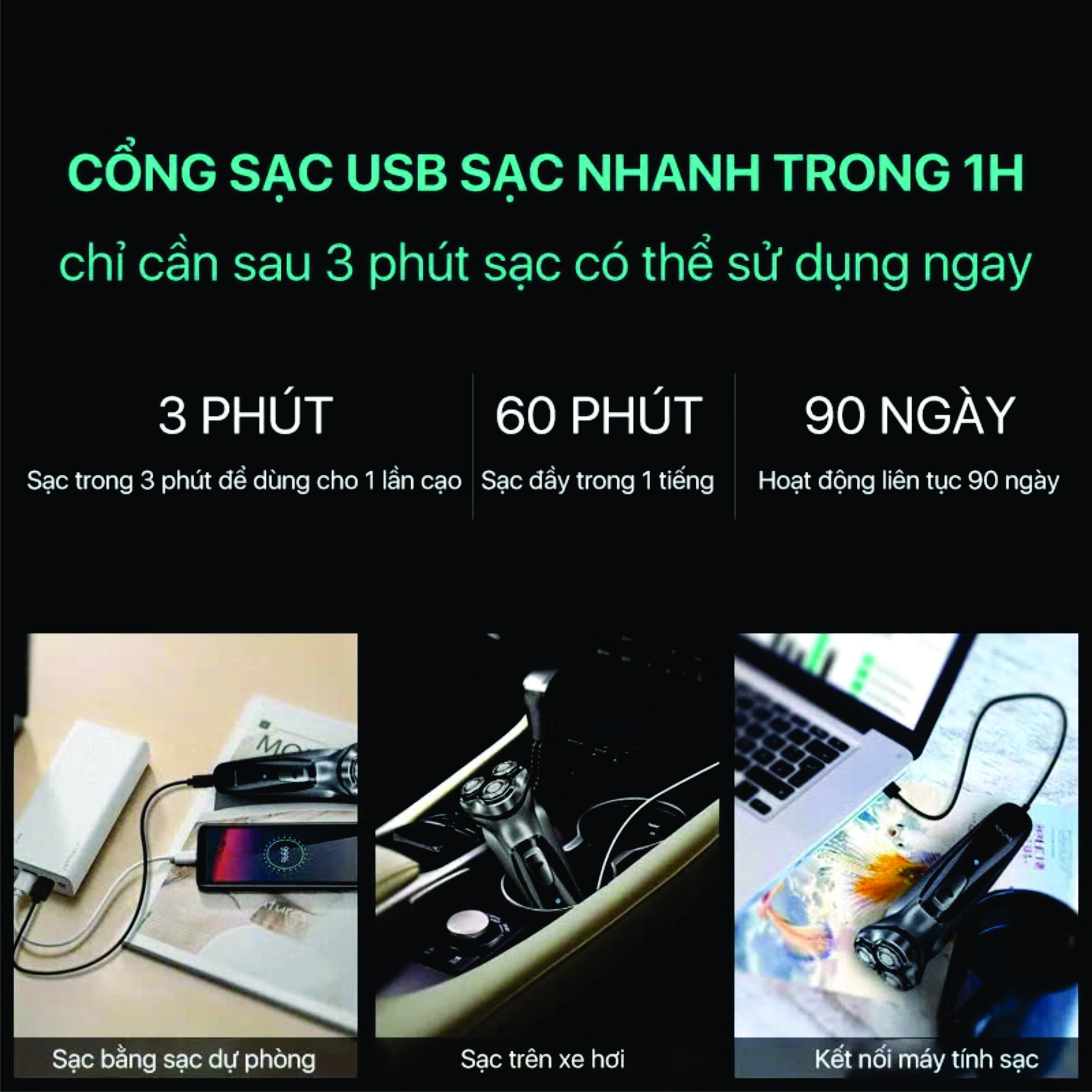Thông tin sản phẩm Máy Cạo Râu Sử Dụng Sạc Pin Thông Minh Tiện Lợi Có Lưỡi Dao Kép Tự Làm Sắc, độ bền cao, cạo sát chân, cực sạch - Công suất: 2W -