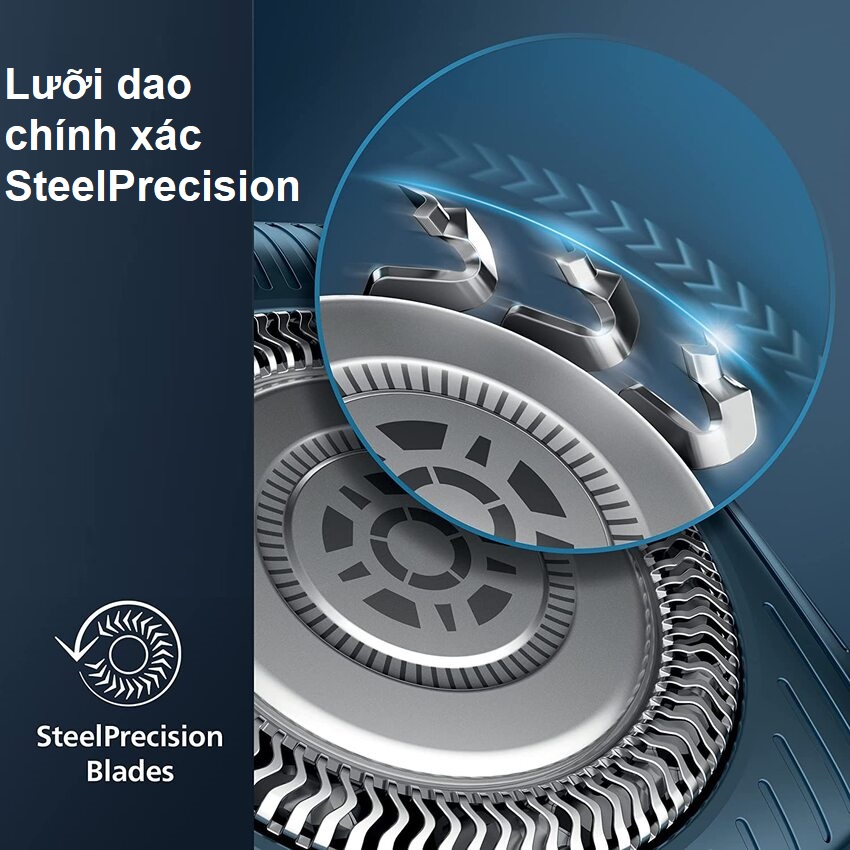 - Hệ thống cạo râu: Lưỡi cạo SteelPrecision