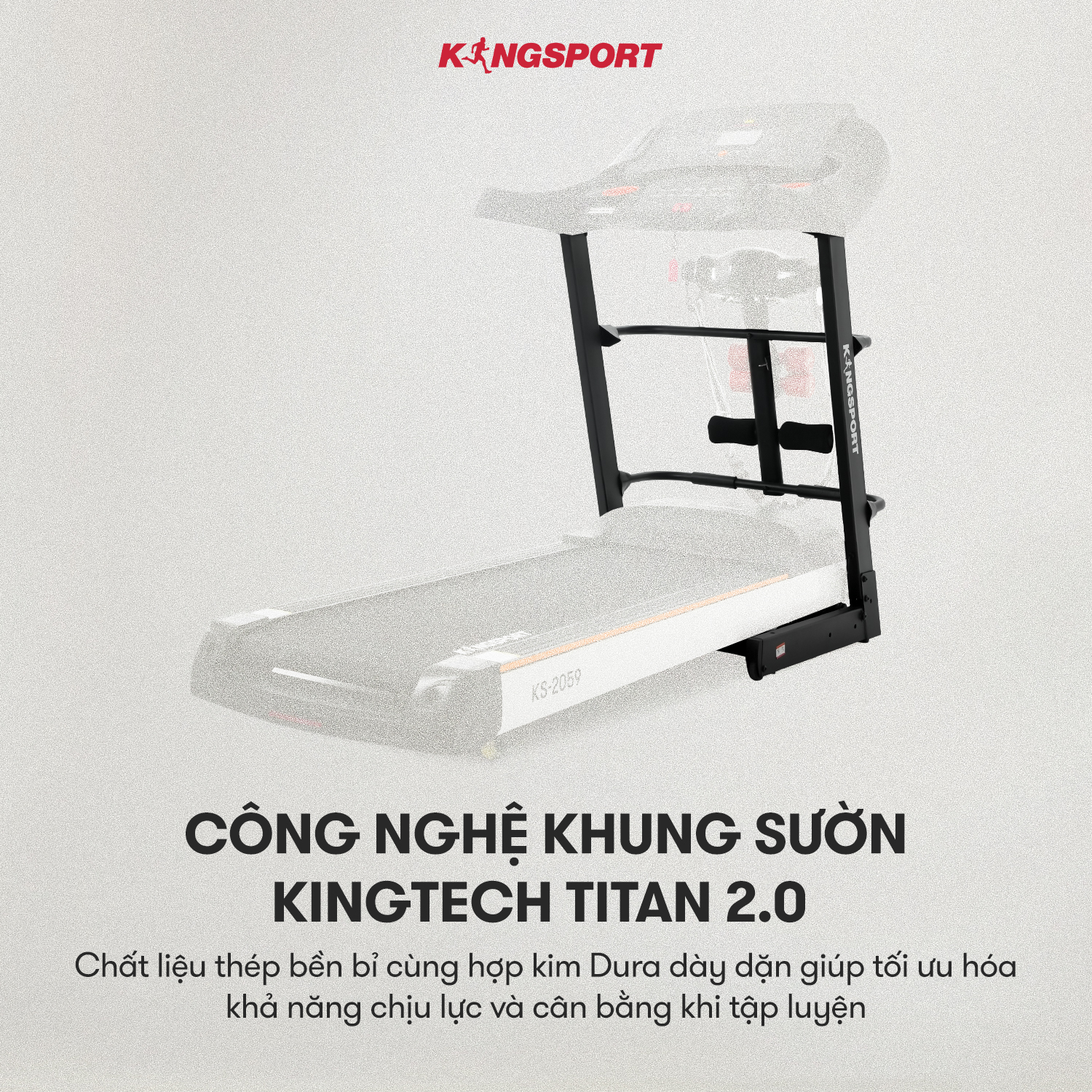 Máy Chạy Bộ KingSport KS-2055 Đa Năng - Chạy Bộ Thả Ga, Cả Nhà Cùng Khỏe ️ Thiết kế sang trọng và hiện đại phù hợp với mọi không gian ️ Khung sườn Kingtech Titan 2.0