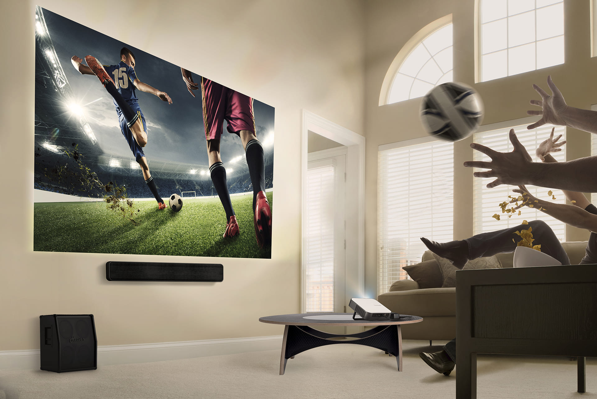 Máy chiếu Samsung LSP7T có độ phân giải thực 4K UHD 3840 x 2160 pixels cho hình ảnh sắc nét đáng kinh ngạc, công nghệ nguồn sáng sử dụng nguồn sáng laser cho hiệu quả