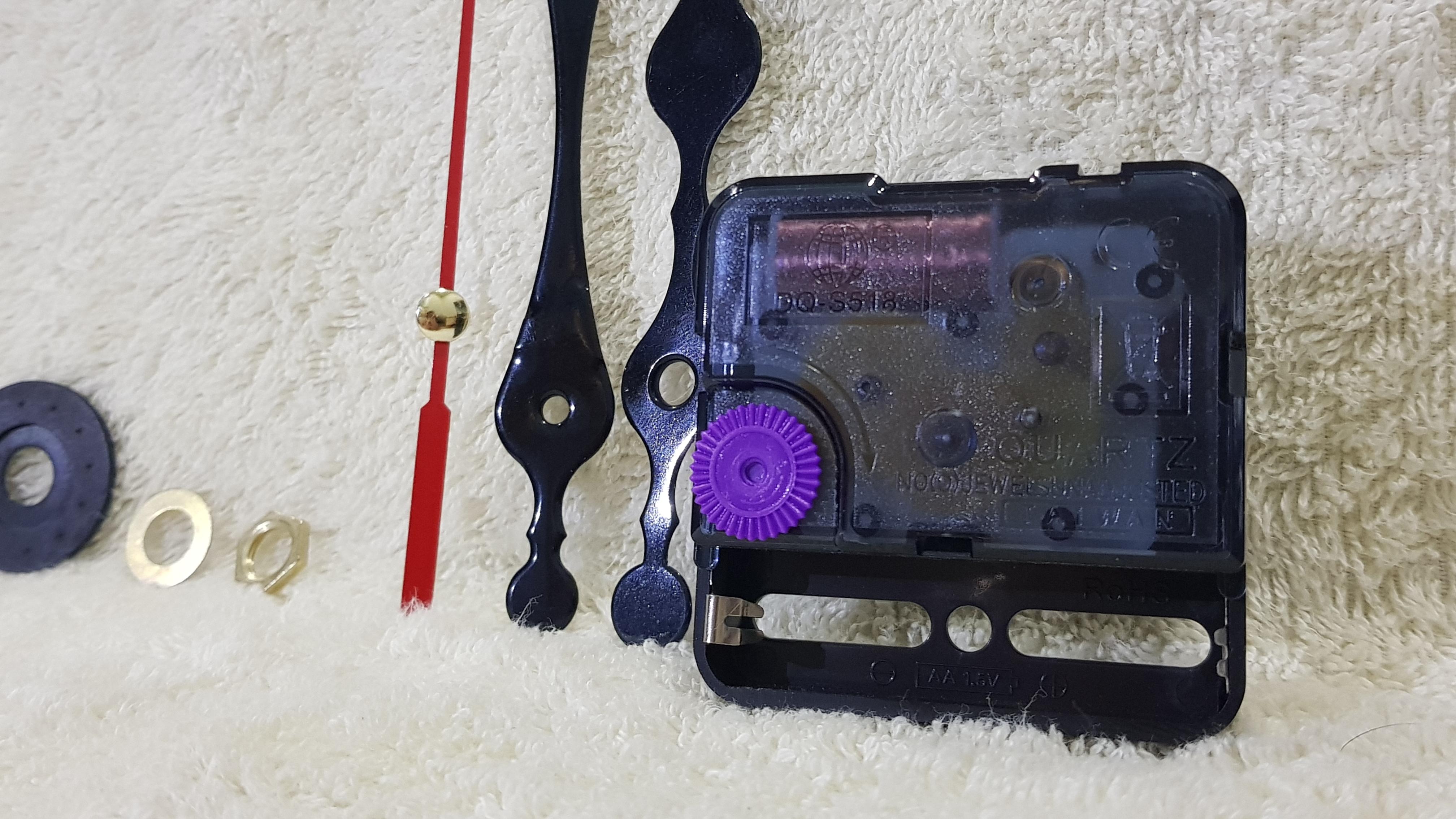 MÔ TẢ SẢN PHẨM Bộ linh kiện gắn đồng hồ treo tường, đồng hồ dán tường cỡ lớn bao gồm: 01 máy đồng hồ: Quartz (chạy 2 kim cỡ lớn) 01 bộ 2 kim (Kích