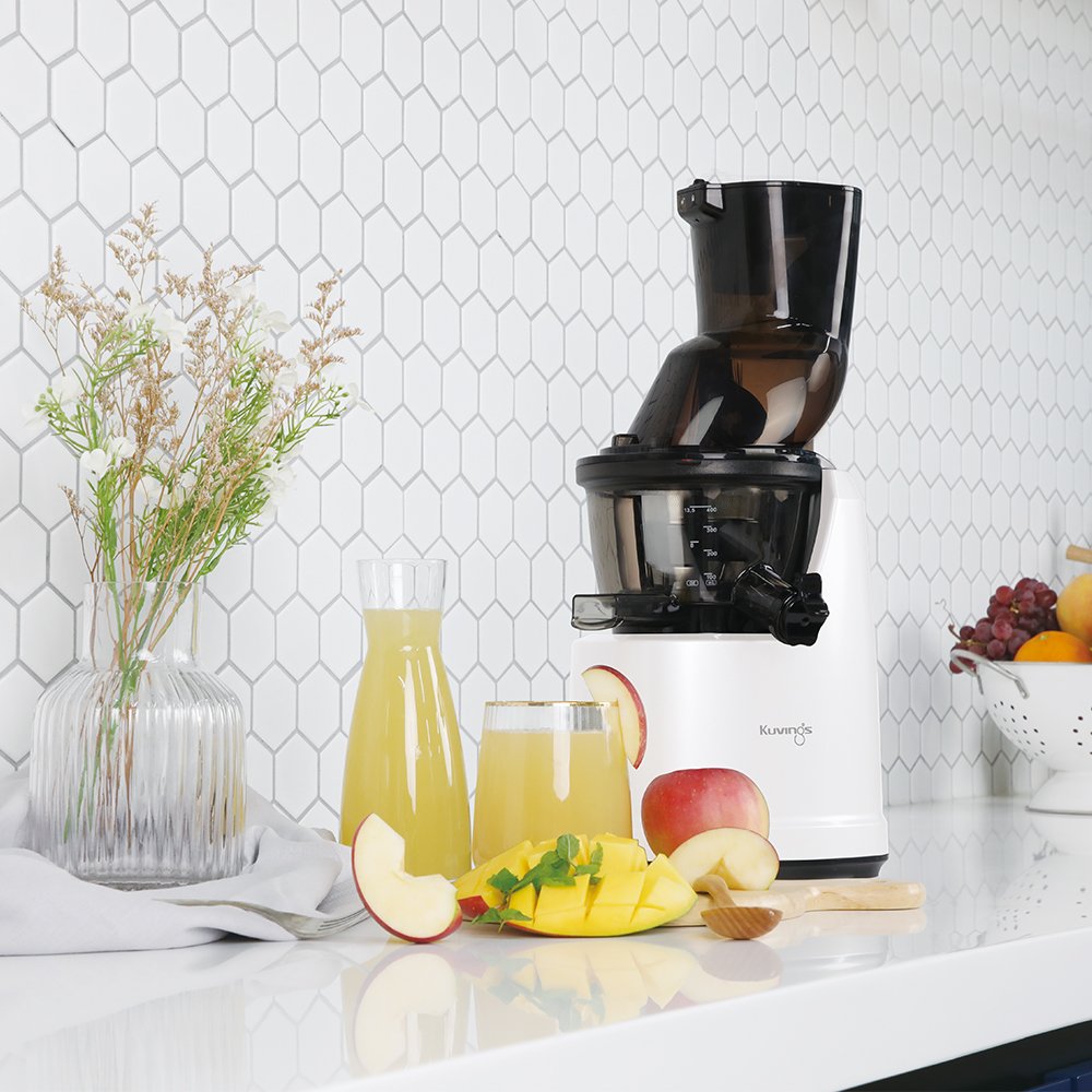 Máy ép trái cây tốc độ chậm hiệu Kuvings Series Hands-Free tự động cắt và ép trái cây cho lượng nước ép nhiều gấp 2 lần, giữ được nhiều Vitamin, Enzym trong rau củ quả gấp