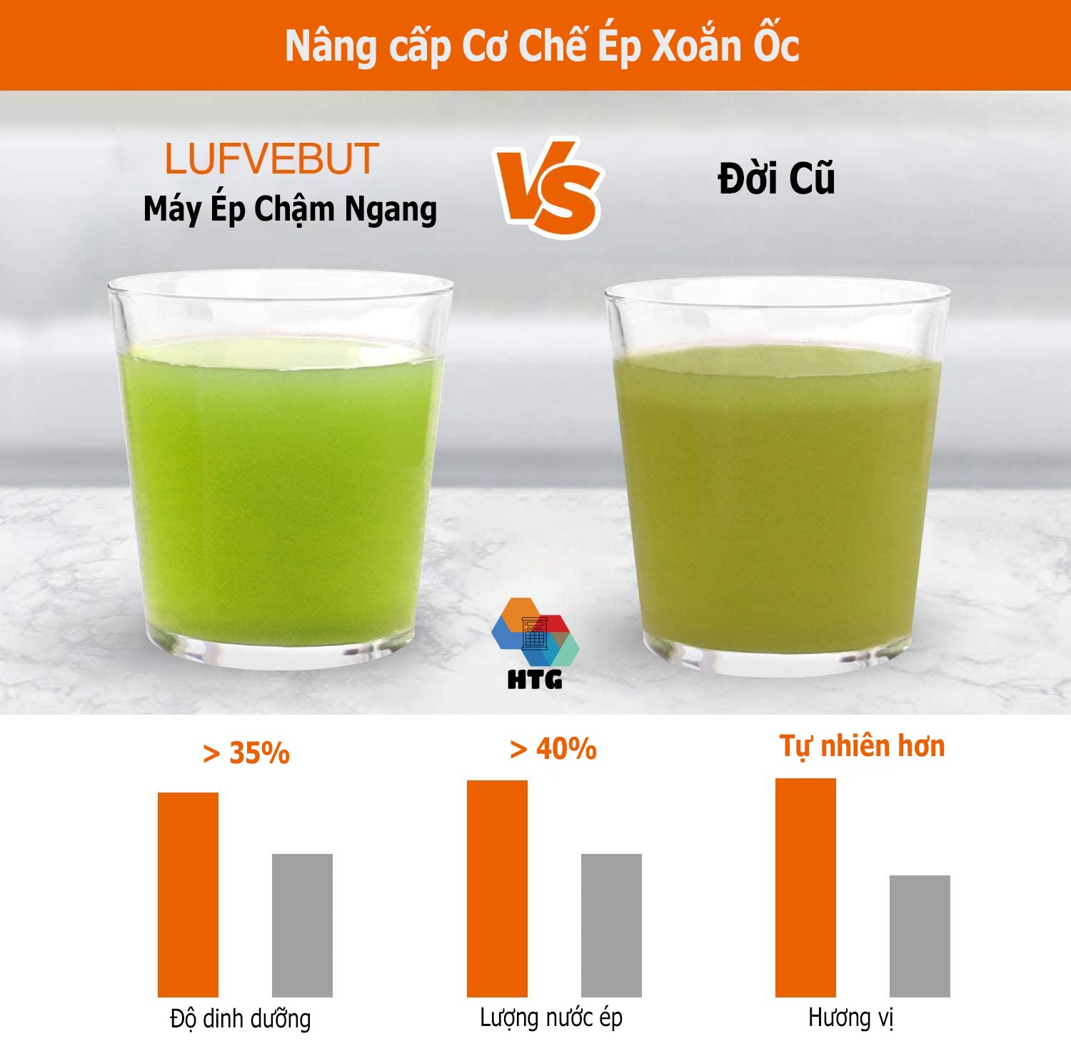 Ưu điểm nổi trội của máy ép chậm so với máy ép trái cây thông thường - Đường kính lớn 7.8cm, không cần cắt nhỏ, ép trực tiếp - Tỷ lệ nước ép nguyên chất