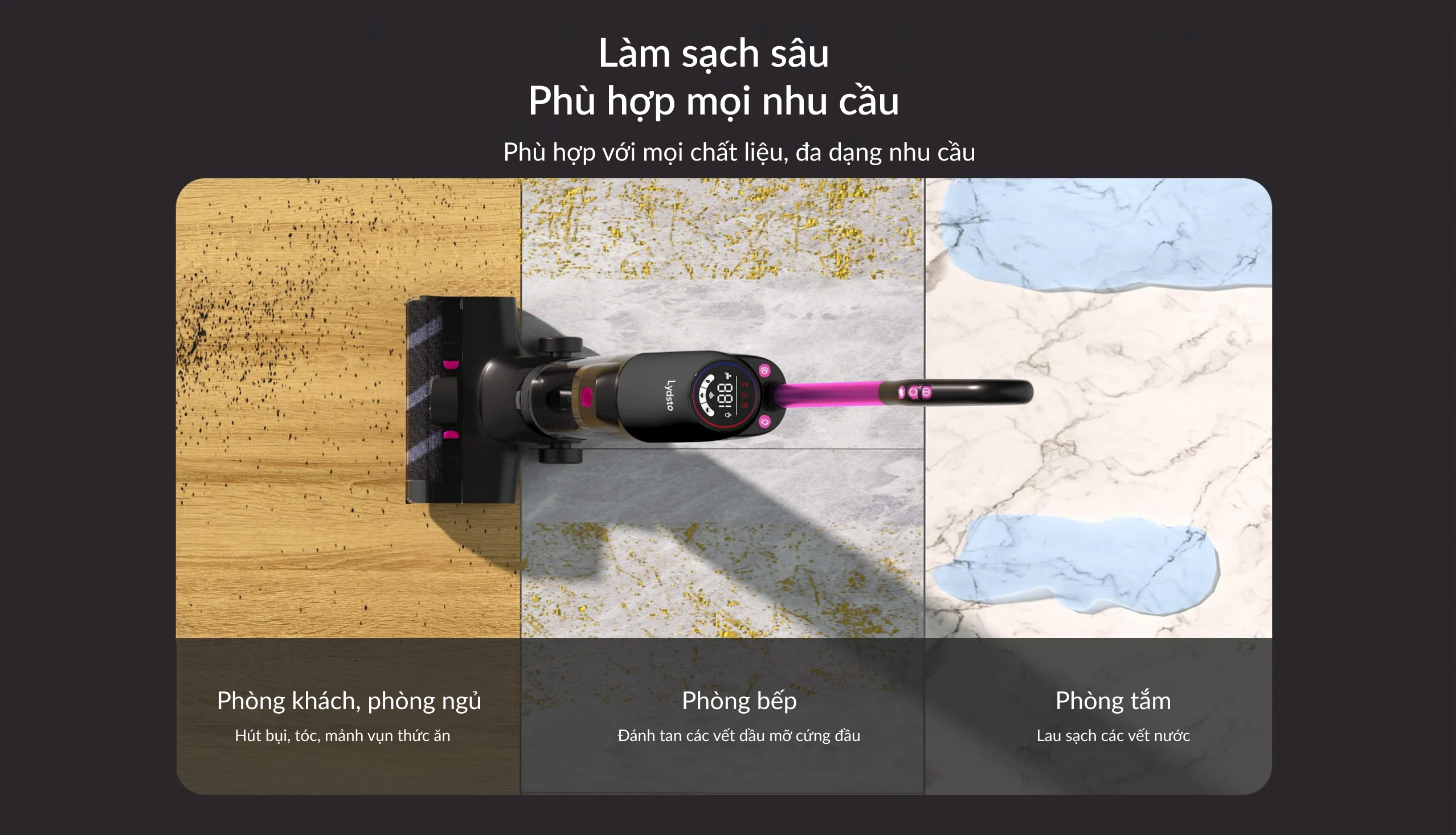 Công nghệ hút bụi lốc xoáy hiện đại không túi chứa bụi Đặc biệt thiết thực nhờ thiết kế nhỏ gọn Dễ dàng đổ sạch hộp chứa bụi chỉ bằng một nút nhấn Xử lý
