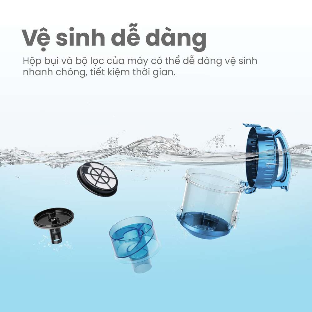 Công nghệ hút bụi lốc xoáy hiện đại không túi chứa bụi Đặc biệt thiết thực nhờ thiết kế nhỏ gọn Dễ dàng đổ sạch hộp chứa bụi chỉ bằng một nút nhấn Xử lý