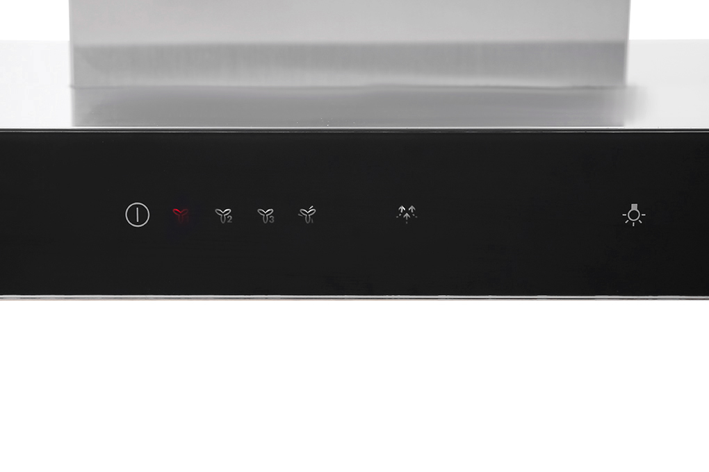 ĐẶC TÍNH SẢN PHẨM Hút mùi kiểu dáng chữ T Chất liệu kính, inox cao cấp Mặt kính cường lực sang trọng Điều khiển cảm ứng 3 tốc độ Màn hình