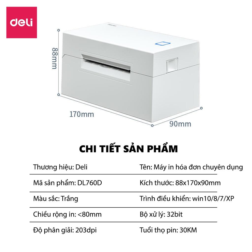 ✨Máy In Nhiệt Deli In Đơn Hàng, Hóa Đơn, Tem Mã Vạch, Logo Tự Dán - Kết Nối USB, Tốc Độ In 1 Đơn/s - DL-760D