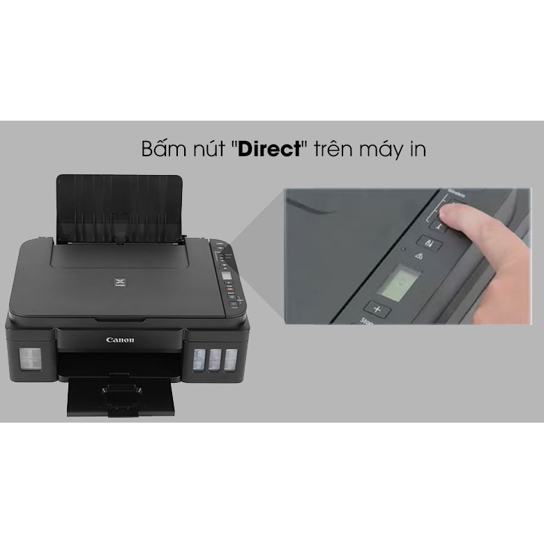 - Kết nối điện thoại: Tải ứng dụng Canon Print trên điện thoại, reset lại máy in rồi nhấn nút Direct trên bảng điều khiển tới khi màn hình nhấp nháy, trên điện thoại chọn bật Canon Print và bắt đầu dò tìm, kết nối máy in.