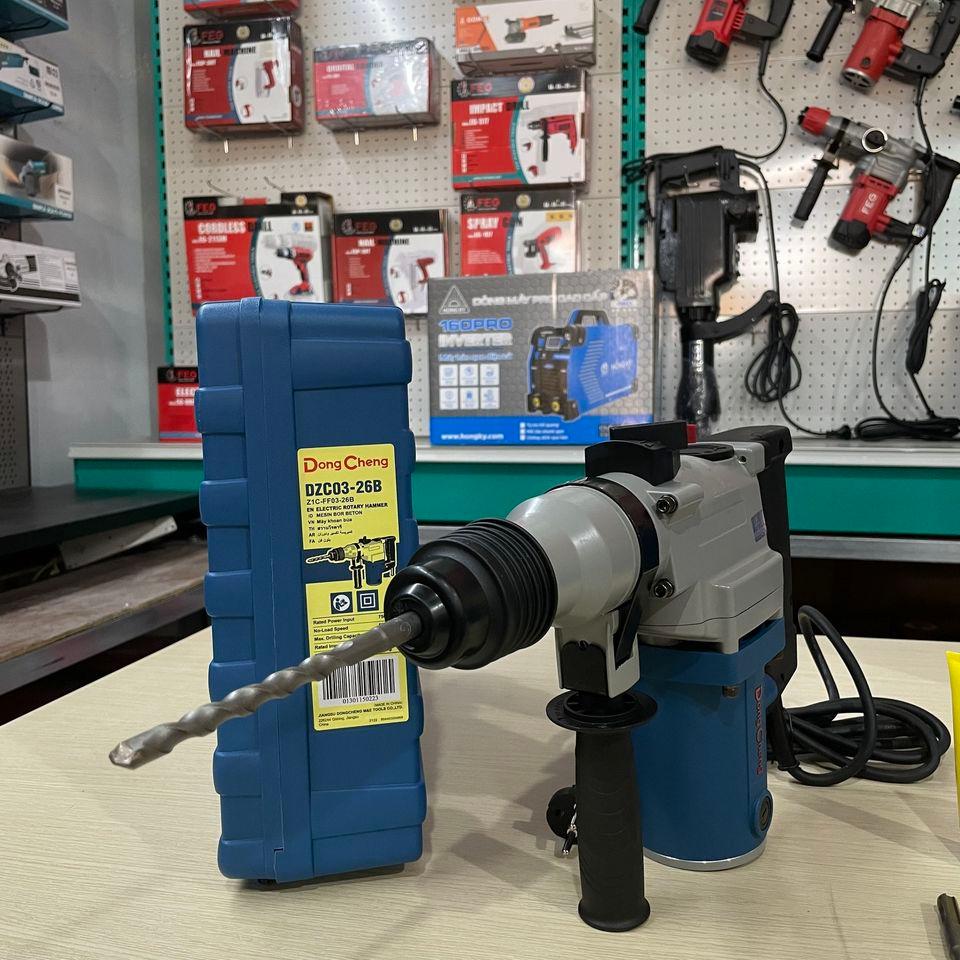 Có công suất đầu vào định mức là 750 W với tốc độ 500 r/min, sử dụng điện áp 220V. Bộ sản phẩm có tổng trọng lượng là 7.0 kg và đầu mũi SDS – hex là 14 mm. Máy khoan búa Dongcheng DZC03-26b có thể được sử dụng để đục phá bê tông tảng lớn, tường gạ Sản phẩm được áp dụng rộng rãi trong lắp ráp ống, lắp đặt cáp, lắp đặt máy móc, cấp nước và thoát nước, trang trí nội thất và các công trình xây dựng dân dụng khác.