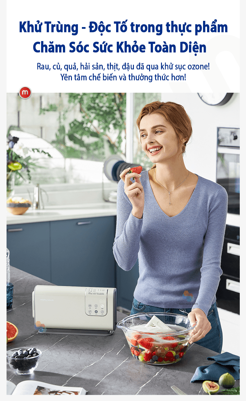 Mua tại TiktokMáy khử khuẩn thực phẩm rau củ, thịt cá hải sản là sản phẩm hỗ trợ rửa và khử trùng thực phẩm vô cùng hiệu quả cho gia đình hiện đại. Hiện nay với những cách gieo trồng và chăn nuôi sử dụng nhiều chất kích thích tăng trưởng. Nên rau củ quả thịt cá, hải sản thường sẽ chứa nhiều chất độc hại. Do đó, máy khử trùng thực phẩm này sẽ là cứu tinh giúp loại bỏ nhiều độc tố trong đồ ăn chế biến, với công nghệ khử Hydrolxyl tiên tiến, đảm bảo chăm sóc sức khỏe trọn vẹn hơn. Máy Khử Khuẩn Thực Phẩm Morphy Richards MR2061