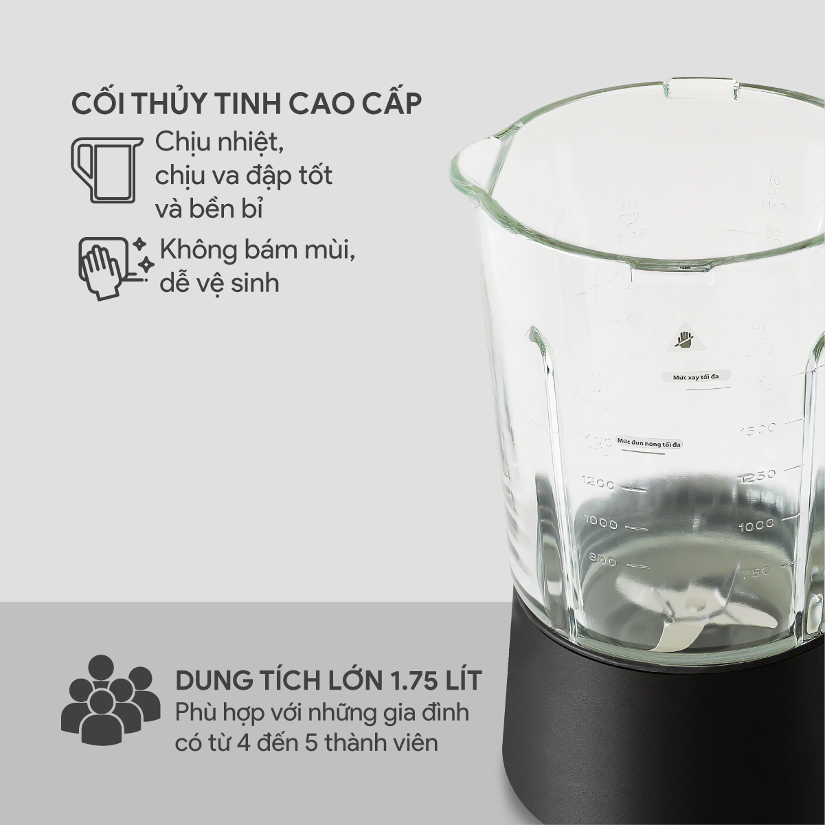 Mô Tả Sản Phẩm Thông số kỹ thuật: Dung tích:1.75 lít Công suất: Xay 400W - Nấu 800W Chất liệu ruột máy: Cối xay thủy tinh Chất liệu vỏ máy: Nhựa ABS Chất liệu lưỡi dao: Thép không gỉ