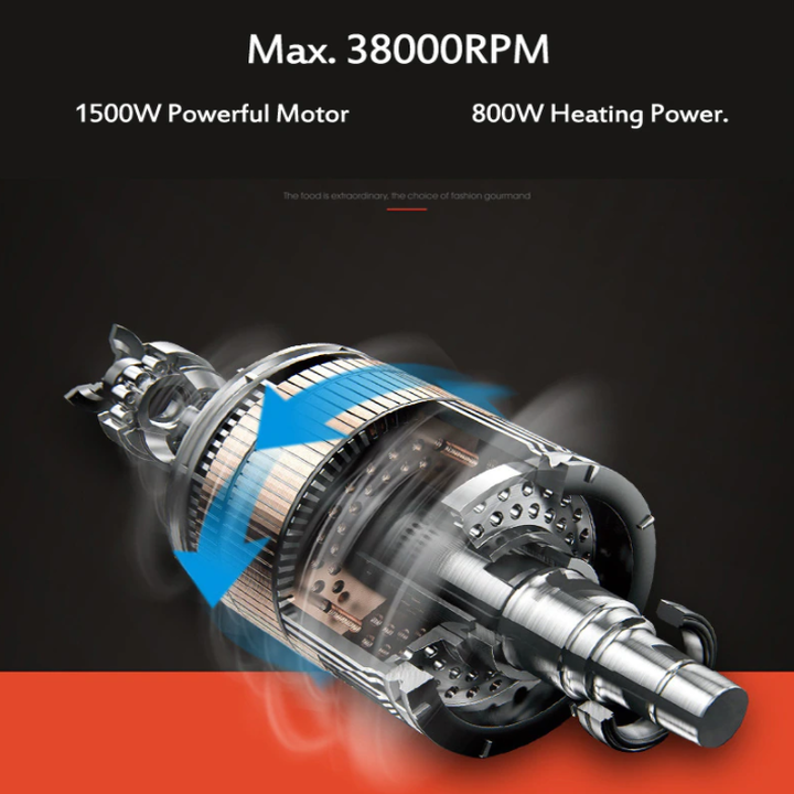 - Lõi động cơ của Máy làm sữa hạt đa năng làm bằng đồng nguyên chất với tốc độ quay tối đa 38000RPM vòng/phút, cùng với công suất làm nóng đạt 800W & công suất khuấy, xay là 1500W. Cho khả năng xay nhuyễn, mịn mọi loại hạt, thực phẩm. Máy làm sữa hạt đa năng mạnh mẽ & tuổi thọ sử dụng kéo dài. Kết quả thử nghiệm, máy cho ra bột thành phẩm mịn chỉ cỡ 5mm, giúp bạn có thể yên tâm chế biến thức ăn, đồ uống, đặc biệt là đồ ăn dặm cho trẻ nhỏ. Quay đảo làm nóng 360 độ