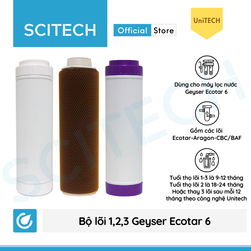 Lõi lọc Ecotar chứa vật liệu là các hạt trao đổi ion (dạng anion) giúp lọc trao đổi ion, loại bỏ các kim loại nặng Fe, Mn, Pb, As… Mật độ hạt cao cùng sự đa dạng kích thước hạt giúp tăng diện tích tiếp xúc, từ đó cho hiệu quả lọc trao đổi ion tăng gấp hơn 20 lần. Lõi lọc Ecotar sử dụng vật liệu lọc thông minh, đa năng, tổng hợp cùng lúc 5 cơ chế lọc, giúp loại bỏ các kim loại nặng, hợp chất hữu cơ, amoni, nitrit… có kích thước siêu nhỏ. Lõi Ecotar có tuổi thọ khoảng 9-12 tháng.