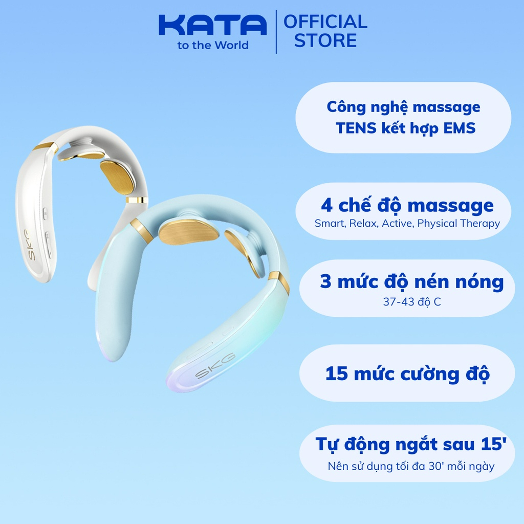 ** Thông Tin sản phẩm Máy Massage Cổ SKG K6E- Tấm điện cực mạ vàng 24K mát-xa cho da nhạy cảm, không gây mẩn ngứa, khó chịu