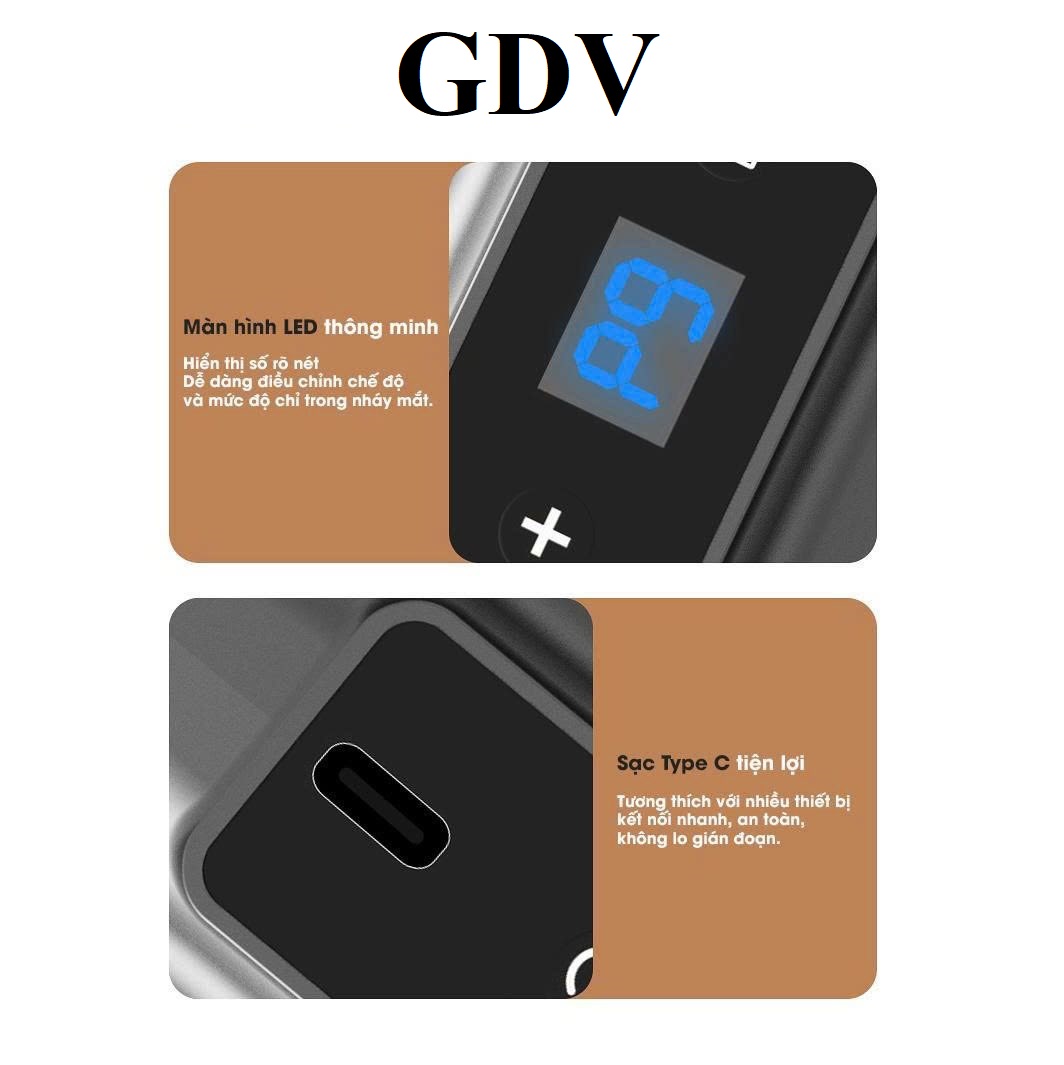 1.THÔNG TIN SẢN PHẨM:- Tên sản phẩm: Máy massage cầm tay GDV JBD-086 loại 16 đầu- Công dụng: Massage toàn thân Lưng, Chân, Tay, Vai, Cổ- Chất liệu: Nhựa ABS- Điện áp định mức: 7.4V- Công suất địn...