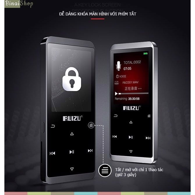 Máy Nghe Nhạc Lossless Bluetooth Ruizu D02 4GB / 8GB sở hữu thiết kế sang trọng tinh tế với mặt kính gương chống lóa, sáng bóng chịu lực tốt kết hợp vỏ hợp kim cắt CNC chắc chắn. Đặc biệt, Ruizu D02 với kích thước nhỏ gọn, kiểu dáng đơn giản giúp bạn dễ dàng thao tác phù hợp với nhiều đối tượng người dùng khác nhau.