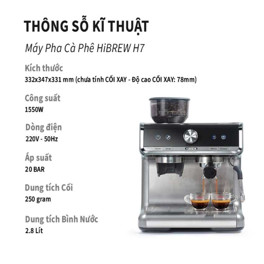 Máy pha cà phê Espresso chuyên nghiệp thương hiệu Mỹ cao cấp HiBREW H7A - Hàng Chính Hãng Máy pha cà phê Espresso chuyên nghiệp 3 trong 1 HiBREW H7A là một thế hệ mới trong