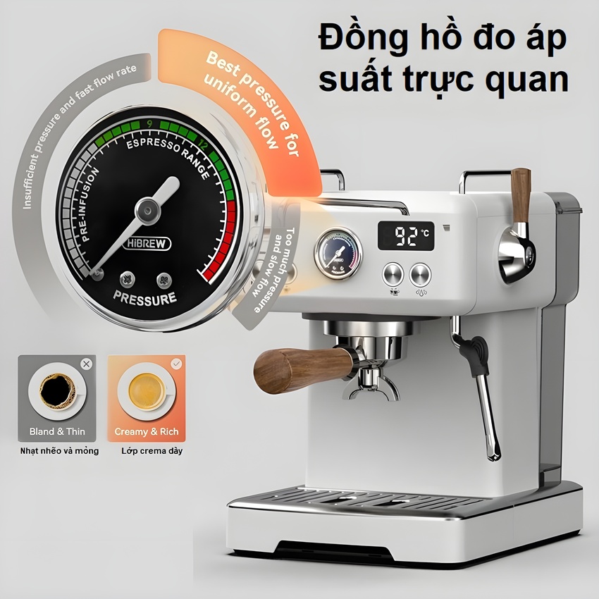 Máy pha cà phê bán tự động Espresso, Cappuccino, Latte thương hiệu Mỹ cao cấp HiBREW H10B - Hàng Nhập Khẩu Tiếp nối thành công phiên bản Máy pha cà phê espresso bán tự động