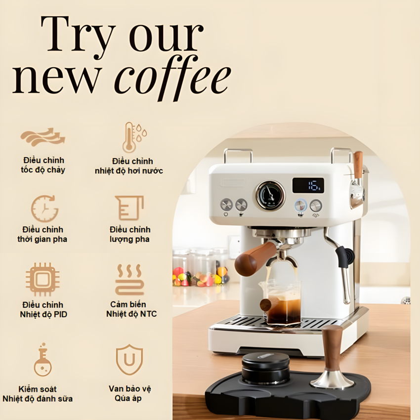 - Linh hoạt kiểm soát nhiệt độ pha chiết suất cà phê 90~95ºC