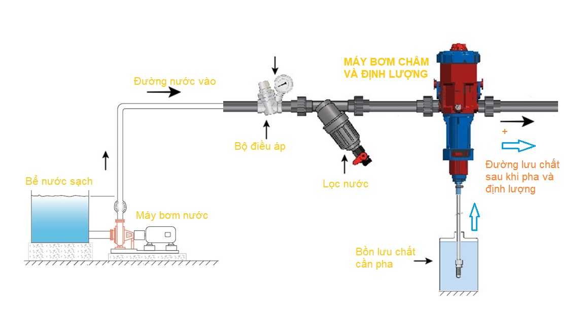 Mua tại TiktokBơm định lượng hóa chất hiệu Mixtron hay máy pha thuốc thú y tự động, thiết bị châm phân, được lắp đặt trực tiếp trên đường cấp nước, tự hút và pha trộn hóa chất theo tỉ lệ, cho phép người dùng định lượng chính xác và đồng nhất lưu chất.