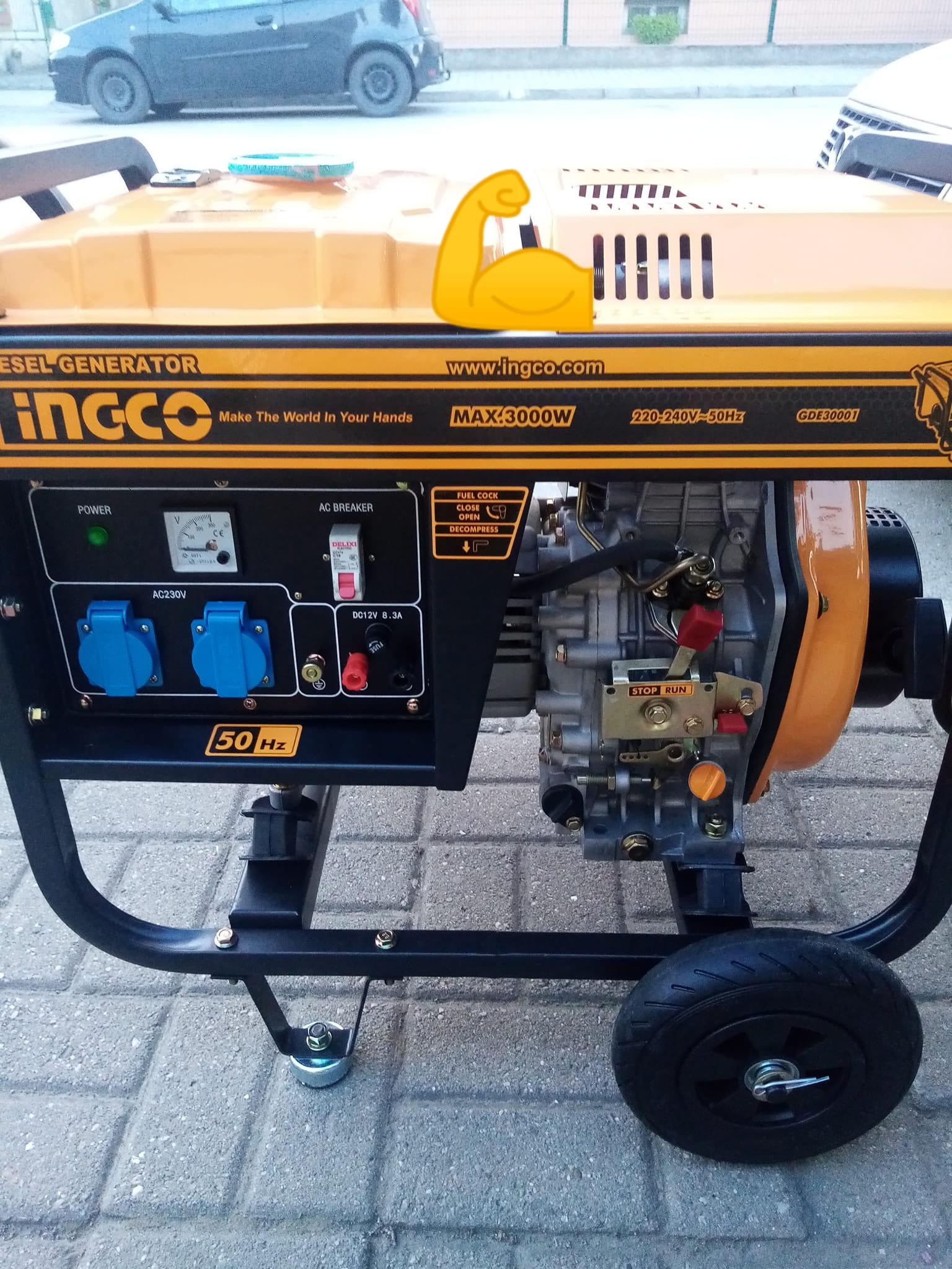 Máy phát điện INGCO GDE30001 dùng nhiên liệu dầu có công suất tối đa là 3.0kVA, đây là dòng sản phẩm mới được sản xuất bởi dây chuyền công nghệ hiện đại hàng đầu của