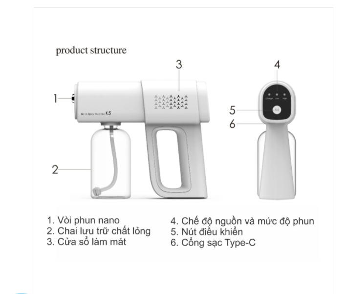 Máy phun sương nano diệt vi khuẩn virus gây bệnh K5 Pro. Rất hữu ích cho nhà có trẻ em hoặc người l