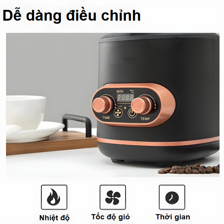 - Điều chỉnh nhiệt độ rang từ: 0-250 độ C
