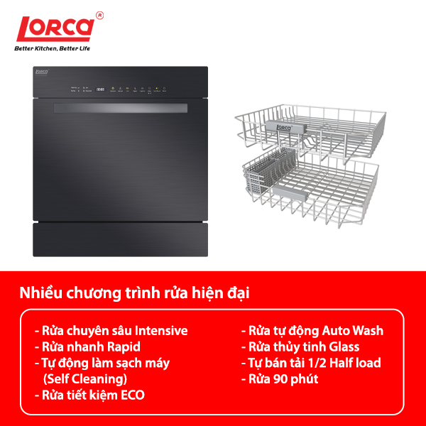 ✨Máy rửa bát 8 bộ LORCA TA 916DWB - Hàng nhập khẩu chính hãng cao cấp, rửa được 8 bộ bát đĩa châu Áu