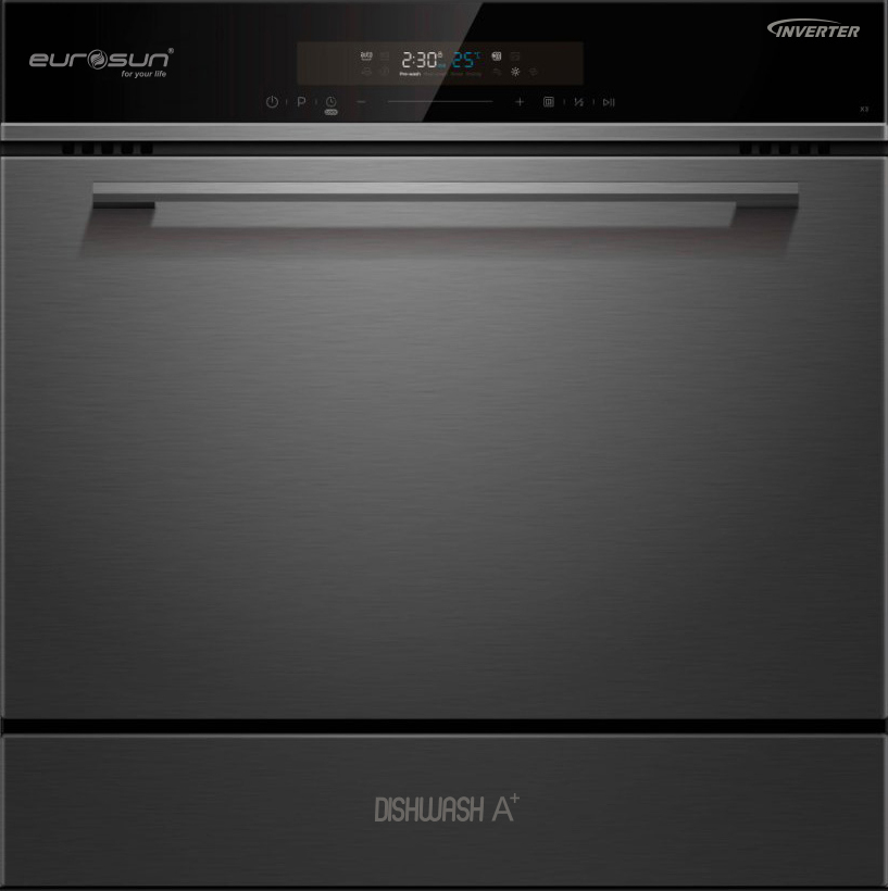 - Máy rửa bát Eurosun SMS58EU09BT được thiết kế lắp đặt âm tủ và độc lập phù hợp với nhiều không gian bếp khác nhau. Gam màu đen xám chủ đạo tạo nên vẻ bề ngoài sang trọng, hiện đại. Với chất liệu inox SUS304 chống bám bẩn. Sản phẩm mang đến cho căn bếp của bạn sự hiện đại và sang trọng.