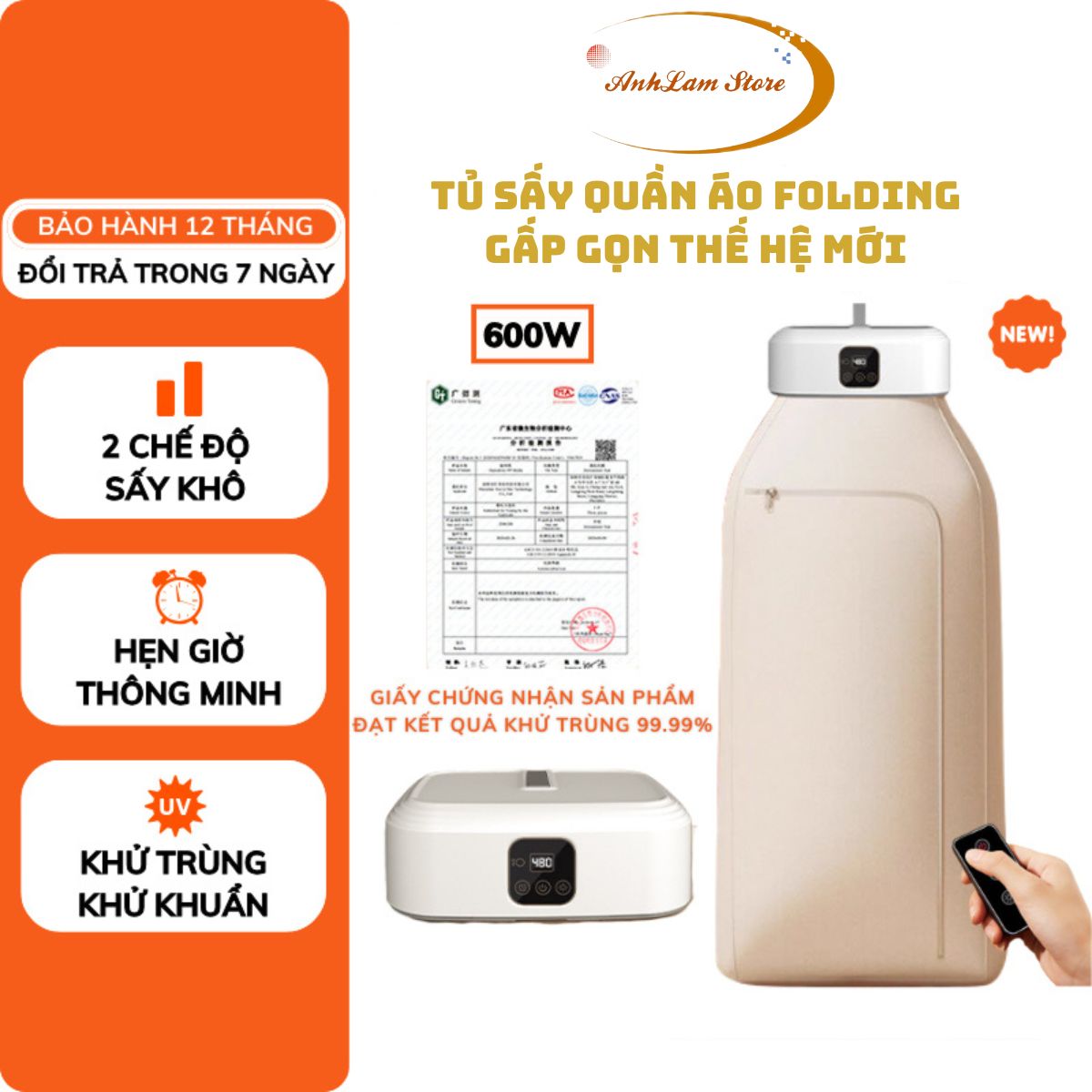 Máy sấy quần áo mini, Tủ sấy quần áo đa năng, Gấp Gọn, Du Lịch. Kèm tia UV kháng khuẩn + Đk từ xa