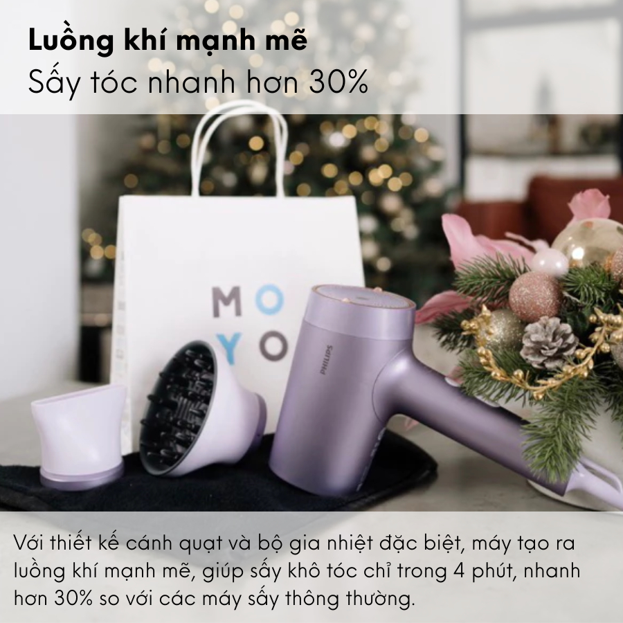 - Làm khô tóc nhanh hơn 20% so với máy sấy tóc 2300W Hệ thống sấy hiệu quả hơn giúp cải thiện luồng không khí, áp suất không khí và truyền nhiệt để máy sấy nhỏ gọn hơn và nhẹ hơn. Máy sấy tóc 1800W này hoạt động tốt hơn máy sấy tóc Philips 2300W.